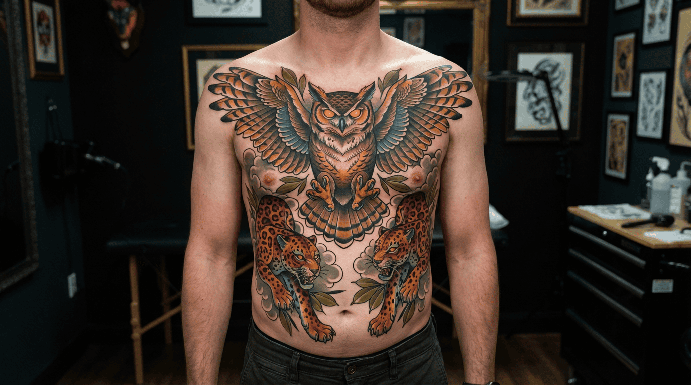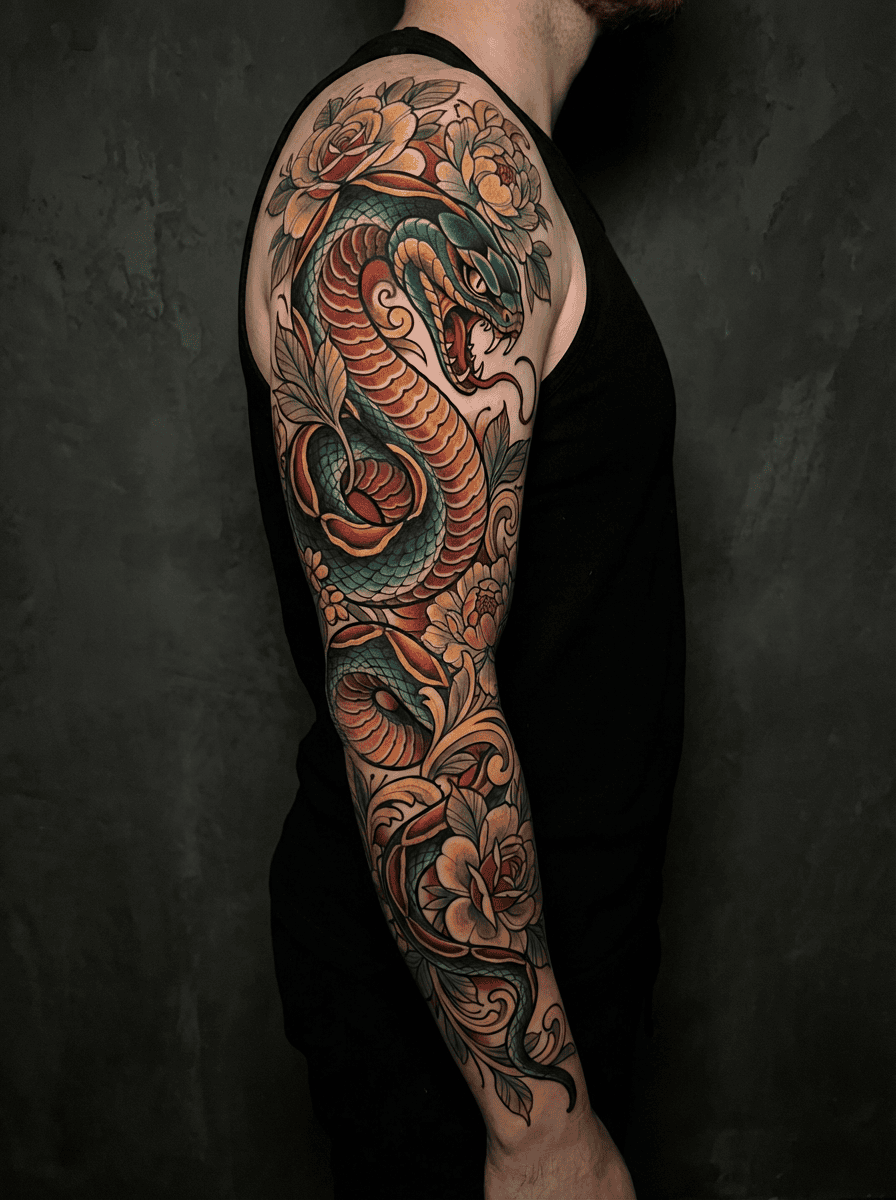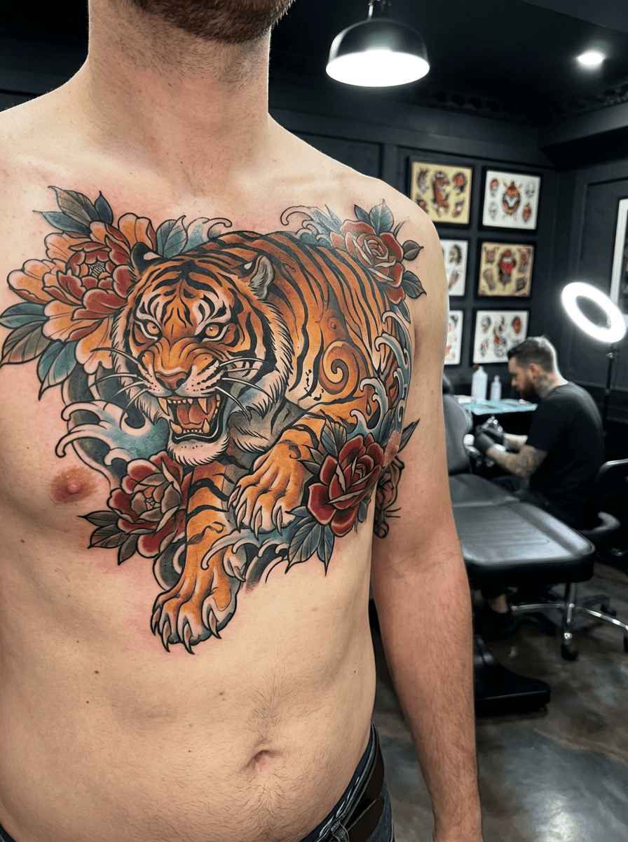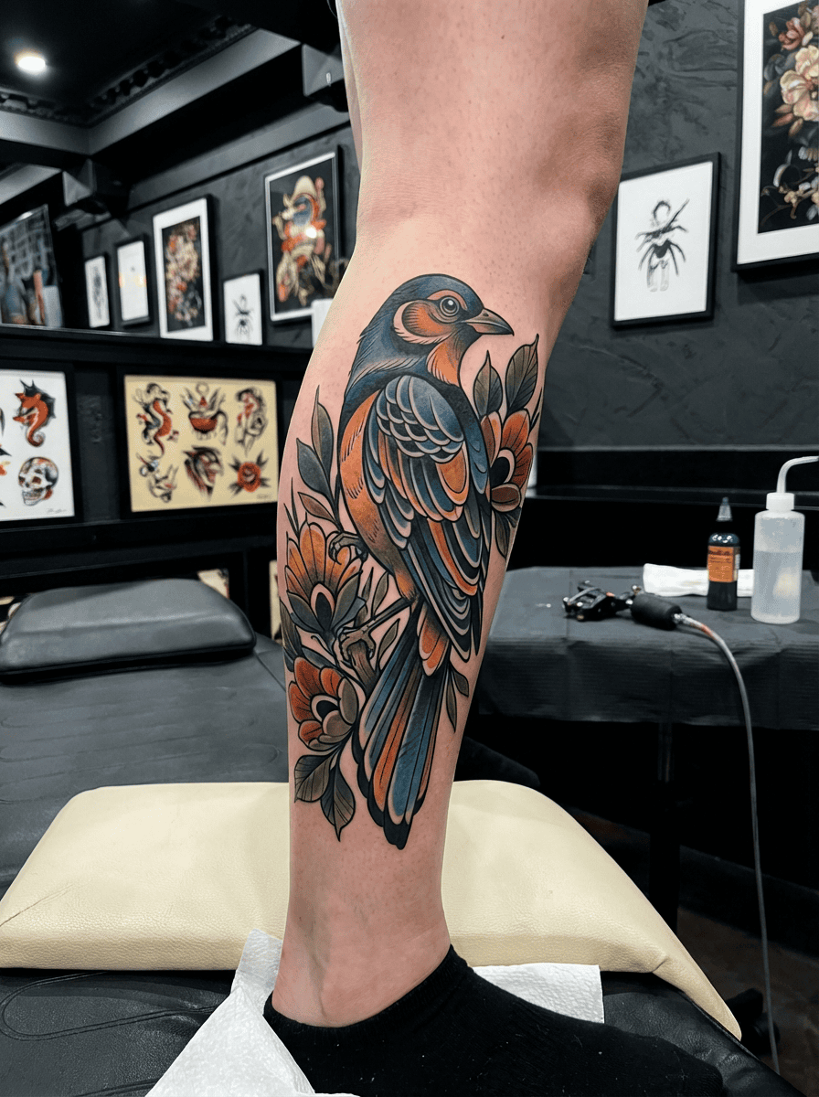 Elias Crowe is a neo-traditional tattoo artist known for strong linework, saturated colour, and designs that balance classic tattoo foundations with contemporary detail. His work draws influence from traditional flash, illustrative art, and modern graphic design, often featuring animals, mythic imagery, florals, and symbolic pieces with a darker tone.