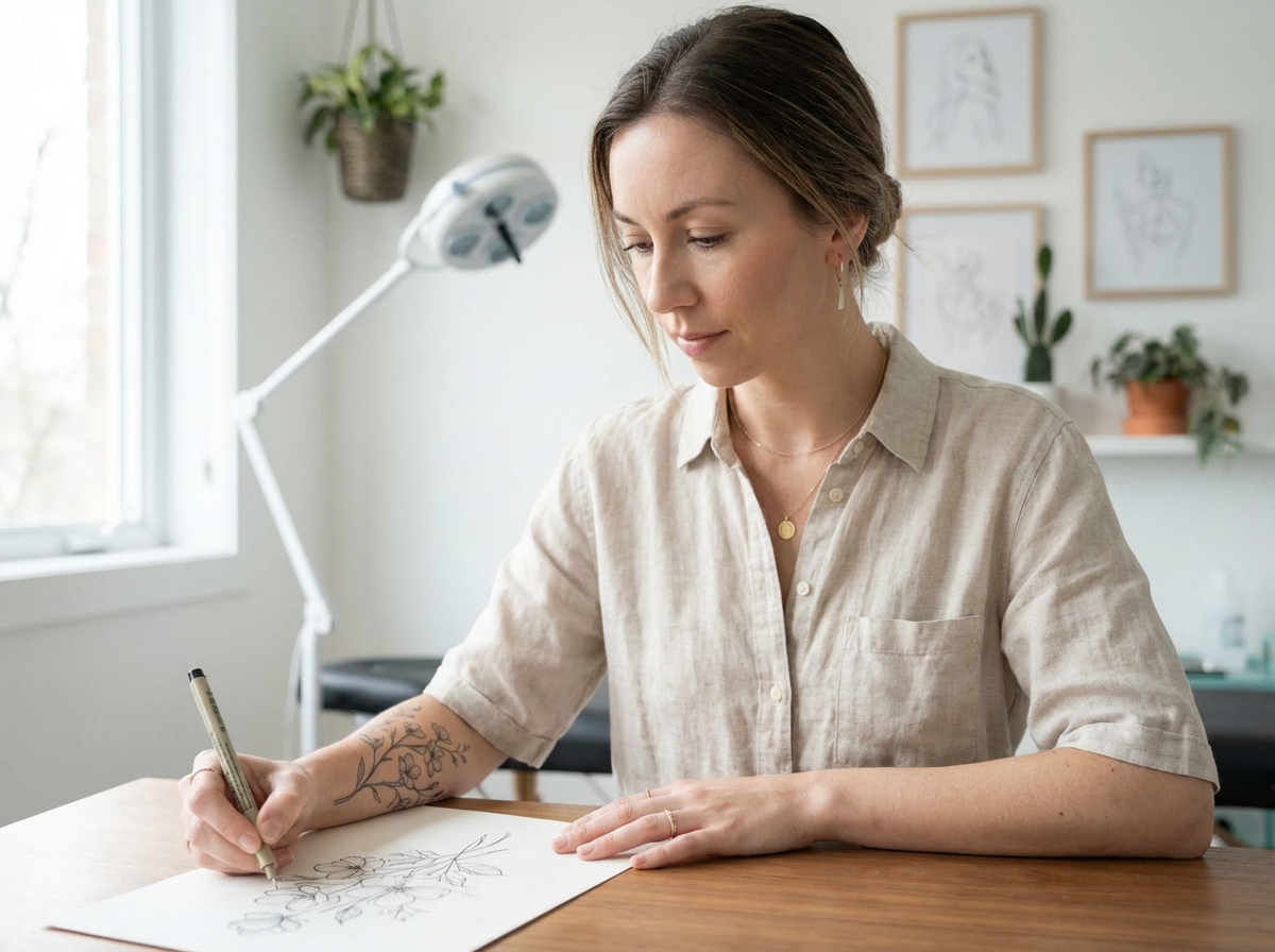 Each tattoo is sketched fresh for you, designed around placement and anatomy instead of relying on stencils.