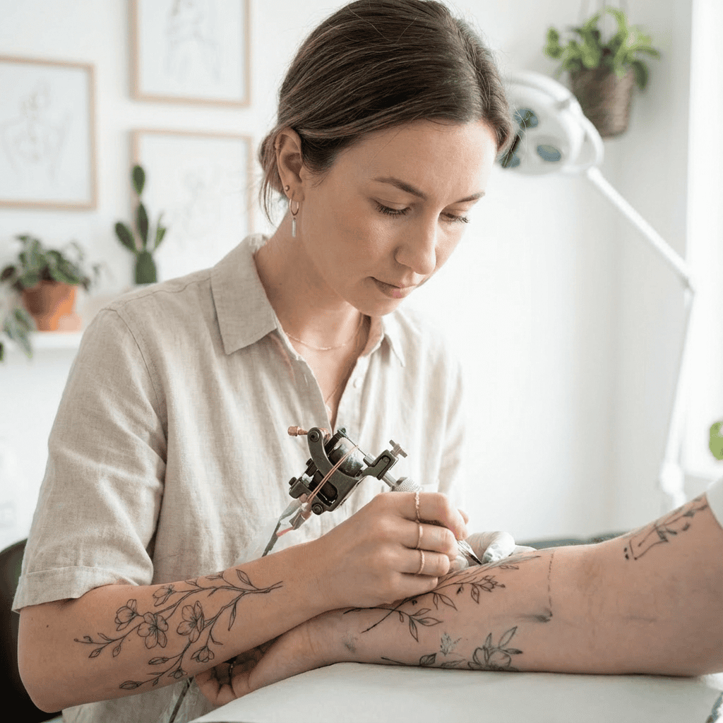 A private studio tattooer working with cruelty-free supplies and a mindful, unhurried approach.