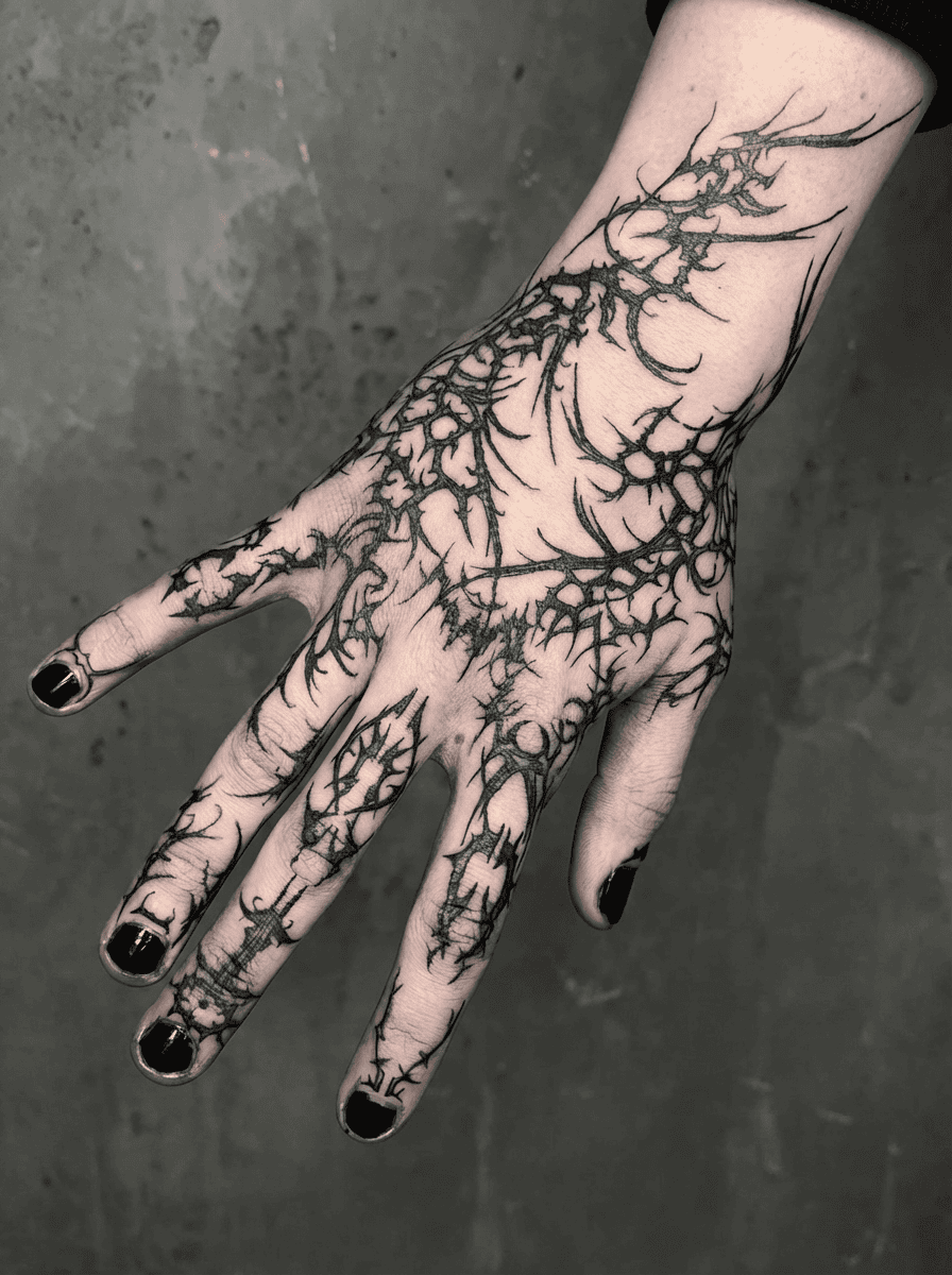 Hand-drawn sigils and warped digital symbols. My work pulls from cyberpunk, occult design, and the idea that the body is just another substrate for code, memory, and myth.